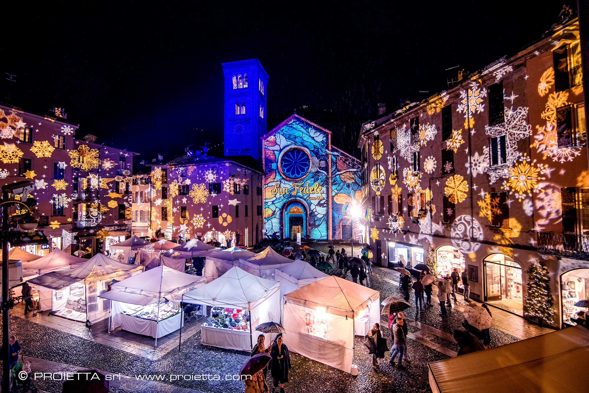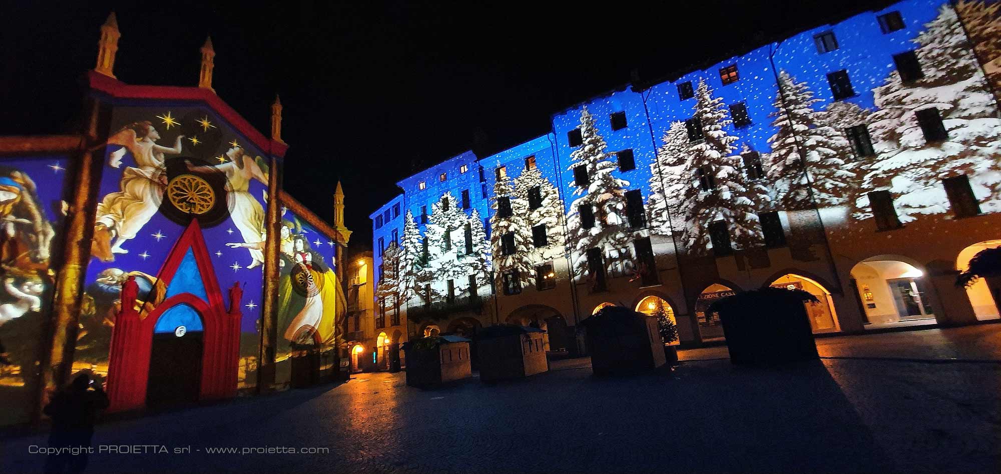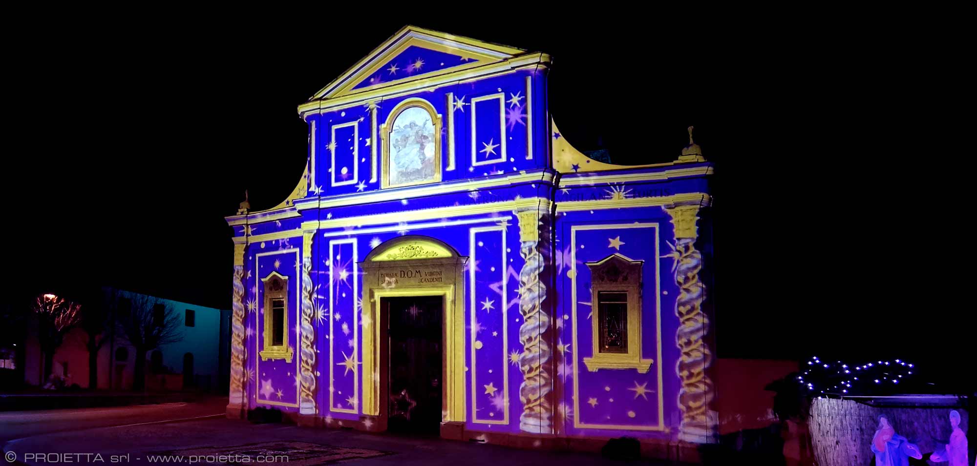 Proietta creates projections for every type of festivity thanks to its large catalog of effects and its experience gained in the design of suggestive scenographies.