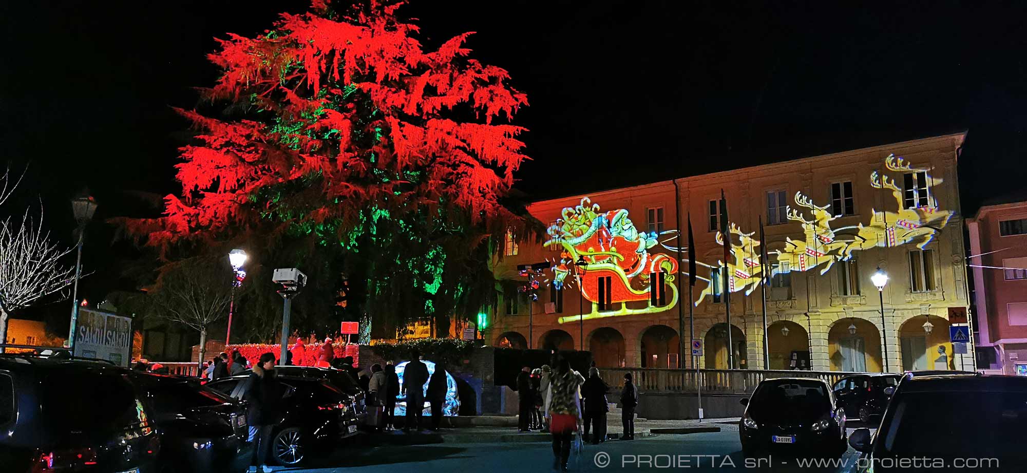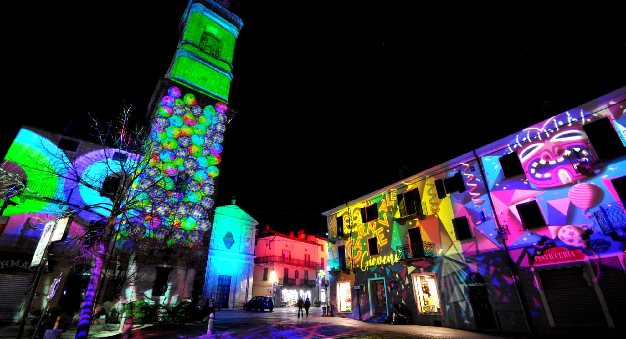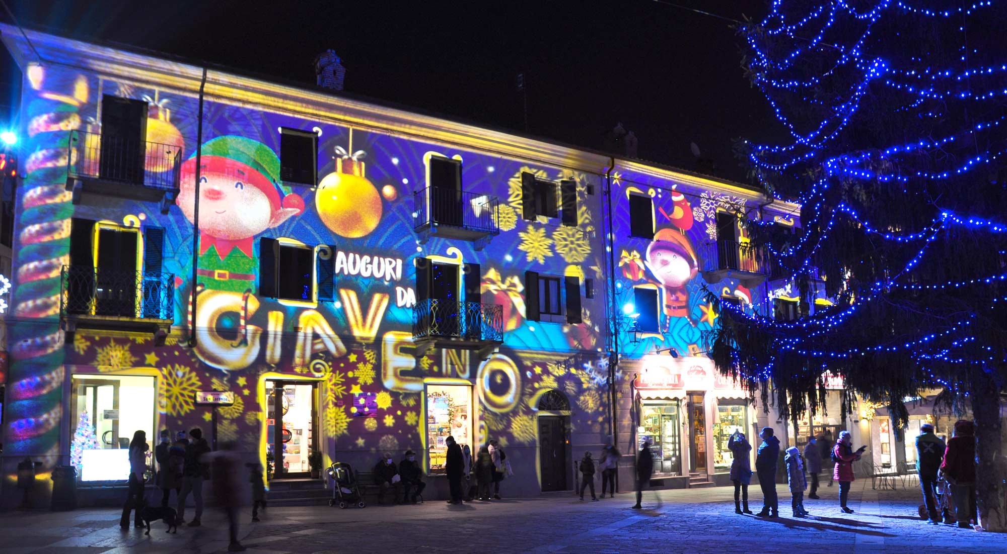 A magical Christmas for children and adults with the Festival of Lights in Giaveno (Italy). Nordic village, video mapping on the Church, talking tree Frondo and the animated fountain.